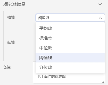 关于象限的分割线,针对四象限矩阵,内置了中位数、分位数、标准差、平均数、阈值、分层抽样算法,根据业务需求科学合理的分割四个象限。